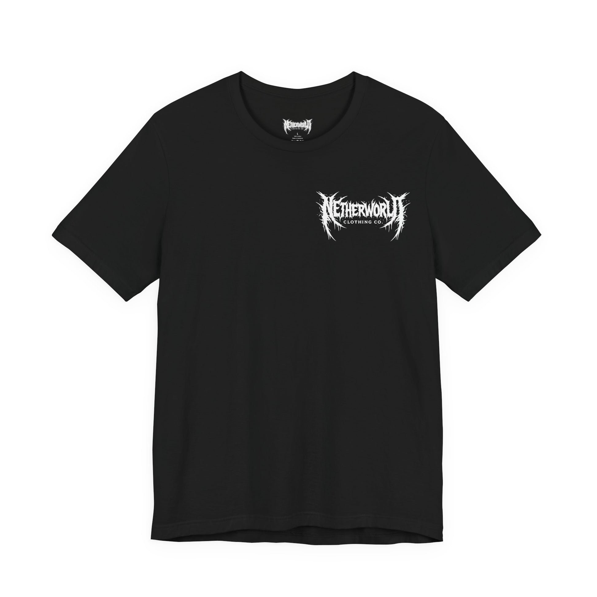 Lightweight cotton, heavy intent. The Netherworld Clothing Co. logo on the front and the 'Veil of the Oracle' on the back. Wear it to stake a claim on late-night walks, shows, or as a statement layer under a worn jacket. The breathable Airlume cotton keeps the shirt cool while the ribbed crew neck and shoulder tape hold the shape through repeat wears.